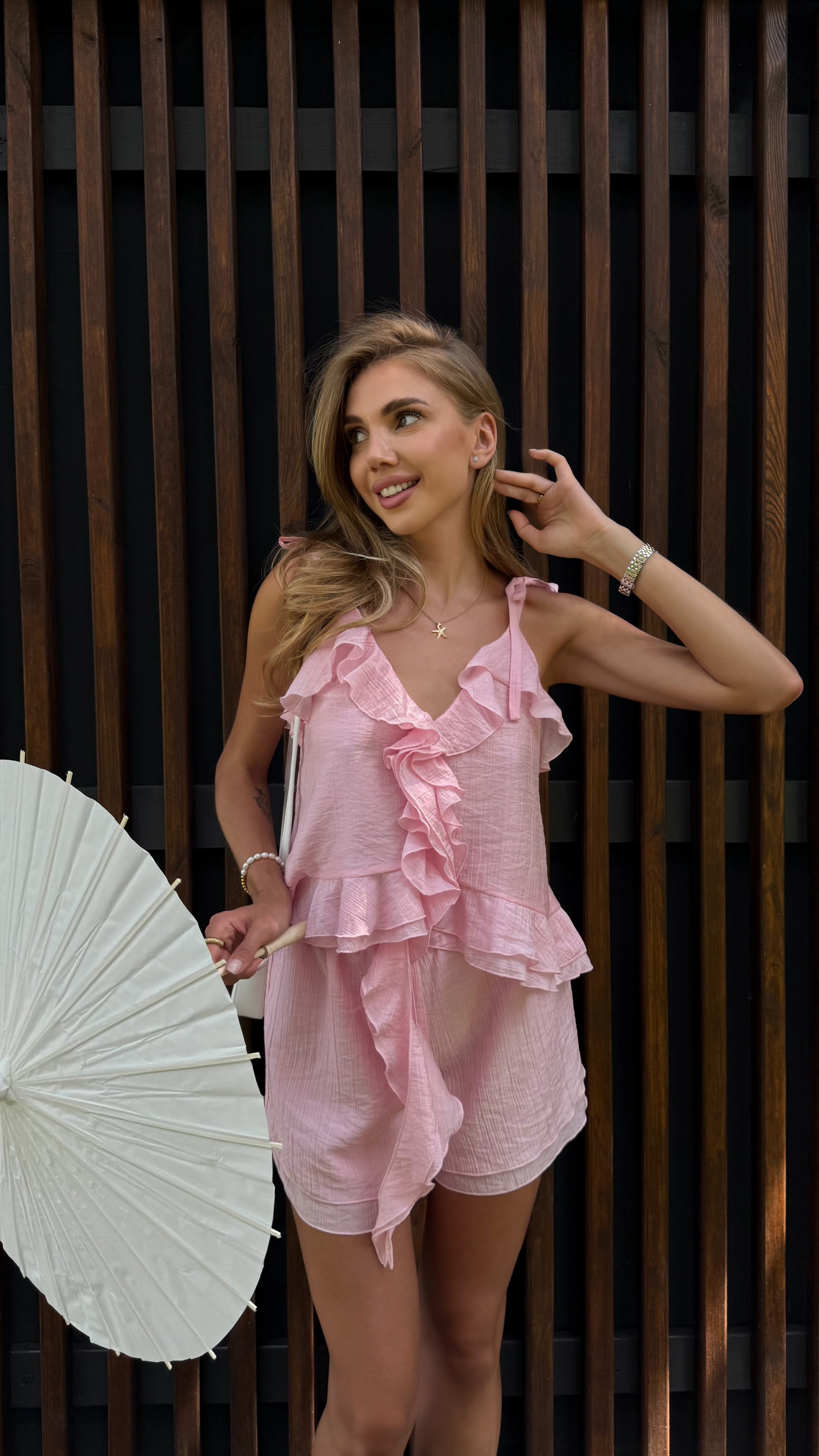 Костюм з зав'язками в рожеву клітинку