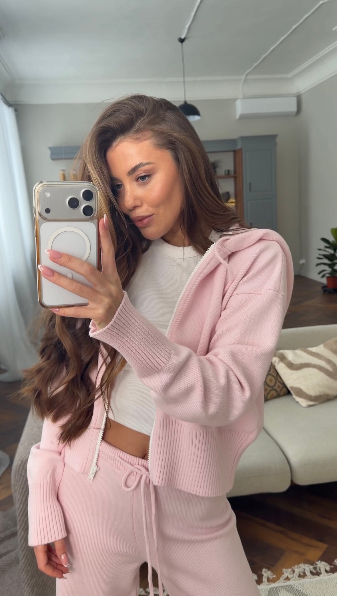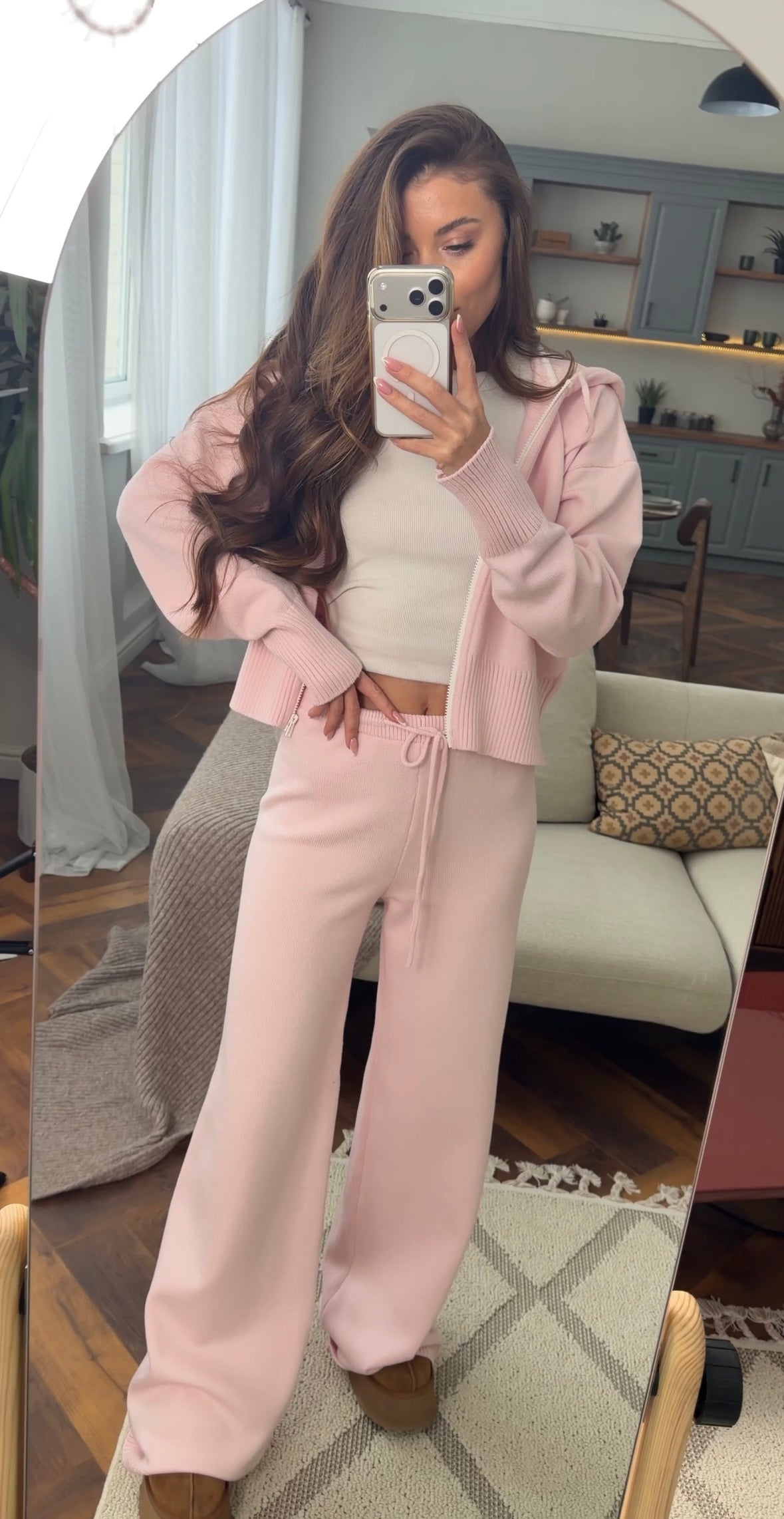 Трикотажний костюм на змійці в рожевому кольорі